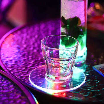Sous-verres à LED Clignotant pour bouteille à LED Autocollant RVB pour tapis de boisson Logo personnalisé Décoration de fête pour bar Discothèque Sous-verres à LED